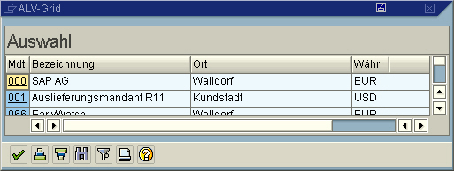In folgendem Beispiel wird die Mandanten-Tabelle T000 eingelesen und in einem Popup angezeigt. Der Mandant wird als HOTSPOT deklariert und kann mittels Mausklick ausgewählt werden.