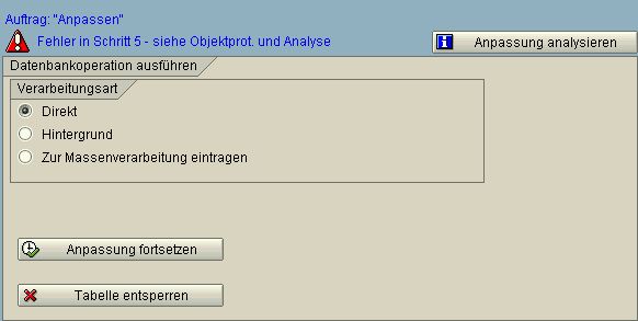 Gehen Sie erneut in das Datenbankutility (Transaktion SE14) und wählen Sie [Bearbeiten]. Sie sehen folgende Meldung: