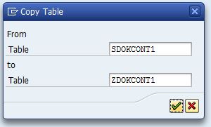 Im ersten Schritt richten wir den Zielbereich ein, in dem die Dokumente abgelegt werden. Wie der Titel des Beitrages schon vermuten lässt, handelt es sich hierbei um eine Datenbanktabelle. Mit der Transaktion SE80 ins Paket SDOK wechseln, die Tabelle SDOKCONT1 suchen und via Kontextmenü als lokales Objekt kopieren z.B. mit dem Namen ZDOKCONT1. Danach ins eigene Paket wechseln, die Tabelle in Bearbeitung nehmen, dann die Erweiterungskategorie der Tabelle definieren, die Tabelle speichern und aktivieren. Damit haben wir die Voraussetzung geschaffen, dass Dokumente hier abgelegt werden können.