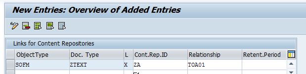 Im folgenden Schritt richten wir ein Content Repository ein. Damit definieren wir im miniSAP-System den Bereich über den mit dem Archivsystem, welches ja in unserem Fall die Tabelle aus Schritt eins ist, kommuniziert wird. Wird z.B. ein Dokument archiviert, so muss das Content Repository (CR) und ein eindeutiger Identifikator, auch Archiv-Dokument-ID (ArcDocID) genannt, definiert werden. So kann jedes Dokument eindeutig identifiziert werden. Mit der Transaktion OAC0 richten wir z.B. das Content Repository ZA ein.