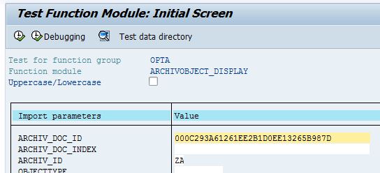 Mit der Transaktion SE37 kann das FM ARCHIVOBJECT_DISPLAY aufgerufen werden. Hier ist die ArcDocID und das Content Repository zu übergeben. Mit Ausführung des FM wird der Document Viewer gestartet und das archivierte Dokument angezeigt. Sofern alles korrekt eingerichtet ist, sollte nun das Dokument sichtbar sein.